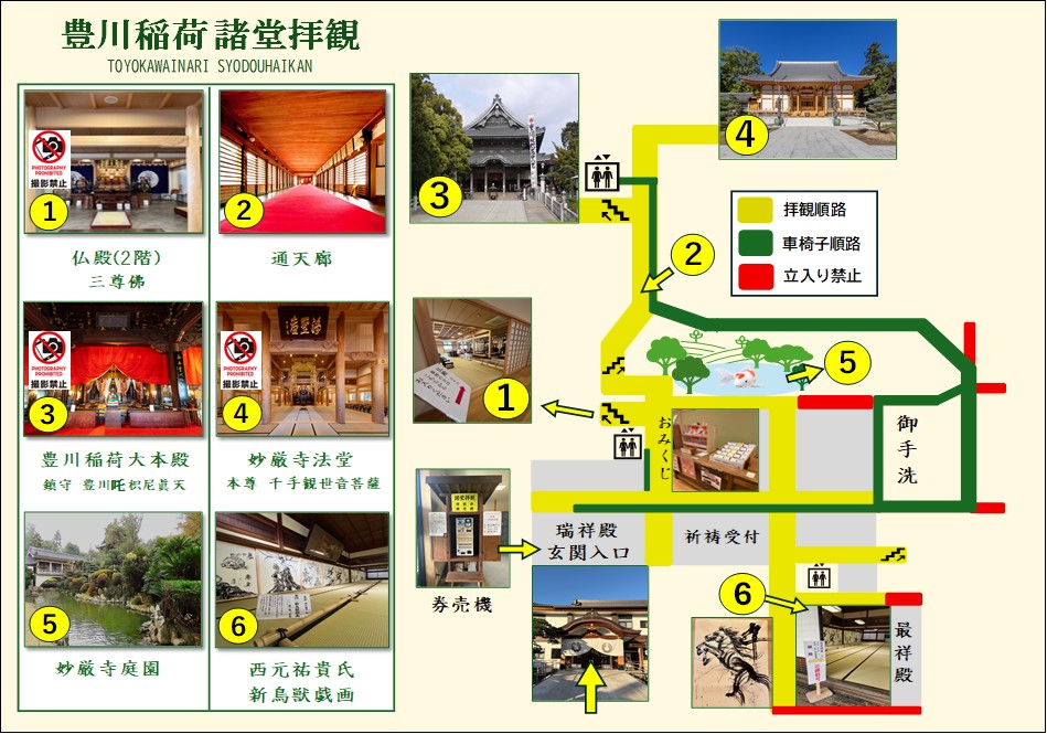 館内では黄色矢印の案内に従い、お静かに拝観をお願いします。