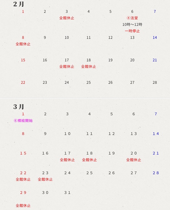 ☟拝観日カレンダー☟